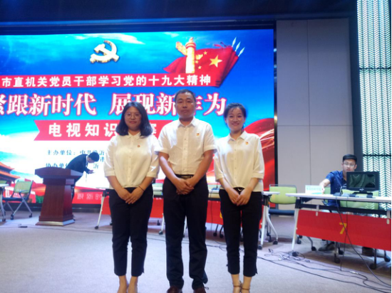 张伟伟、刘凌霏、崔国凤同志参加电视知识竞赛
