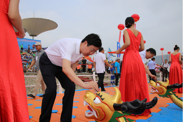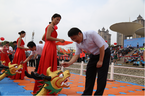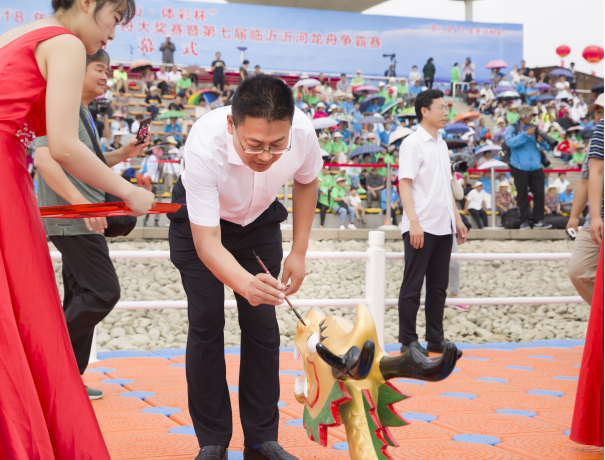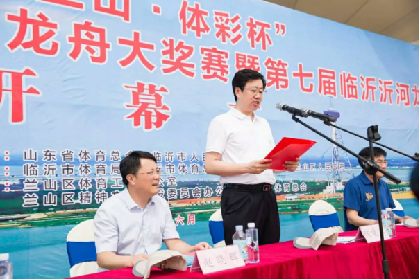 6月16日,节日里的风帆广场,彩球高悬、锣鼓喧天,由山东省体育总会、临沂市人民政府主办,365bet官方开户网址、临沂市体育总会、兰山区人民政府承办,兰山区体育工作办公室、兰山区精神文明建设委员会办公室、兰山区体育总会协办的“锦绣兰山·体彩杯”“纵横江湖”2018年山东省龙舟大奖赛暨第七届临沂沂河龙舟争霸赛开幕。市政府办公室副主任刘恩田主持开幕式,兰山区委书记赵晓晖致辞,市政府党组副书记、副市长、市公安局局长侯晓滨宣布比赛开幕,山东省体育总会秘书处处长孙照亮,山东省体育总会秘书处办公室主任李开锋,365bet官方开户网址党组书记、局长刘艳芬,临沂市园林局党委委员、副调研员欧阳春,兰山区委副书记、区长沈如茂,兰山区委常委、宣传部长徐立娟,兰山区政府副区长王辉等出席开幕式。