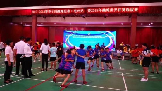 6月1日至4日,由国家体育总局社会体育指导中心、中国大学生体育协会、中国中学生体育协会主办,全国跳绳运动推广中心、安徽省亳州市体育局承办的2017-2018年全国跳绳联赛亳州站暨2019年跳绳世界杯赛选拔赛在安徽省亳州市第九初级中学举行。来自安徽、北京、山东、江苏、上海、天津、河南、广东、江西、浙江、陕西、山西等12个省(市)55支队伍、864名运动员参加比赛。
