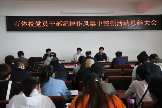 刘梅从纪律作风整顿工作开展情况、集中整顿活动取得明显成效、不断巩固扩大集中整顿活动成果三个方面总结了市体校党员干部纪律作风集中整顿成效,指出了今后的努力方向。