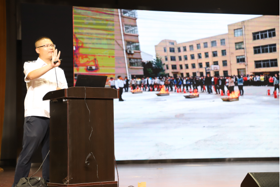 在消防安全知识讲座上,结合学校应急管理和各种案例,专业教官向广大师生详细讲解了消防基础知识、常见防火知识、安全用电用气知识、高层楼宇火灾预防及逃生方法、人员密集场所自我保护及自救能力等内容。之后,指导全校学生进行消防演练。