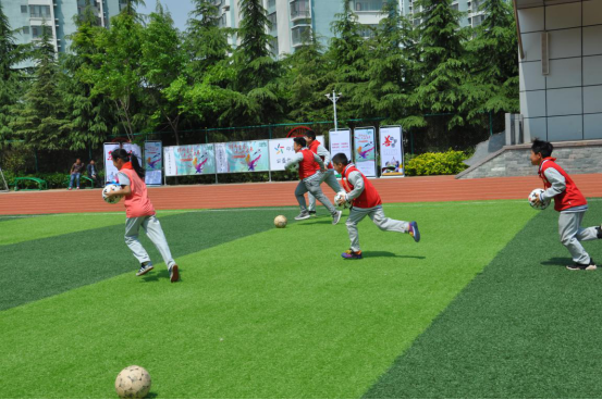 用上体彩捐赠的崭新的足球,同学们兴奋得满场飞奔。在两位教练的带领下,进行了过杆、传球等基础训练。期间,两位教练还对同学们在传球、运球、射门技巧等方面进行了深入指导,丰富的内容与轻松的模式,在让孩子们增长球技的同时,感受到了足球的快乐。